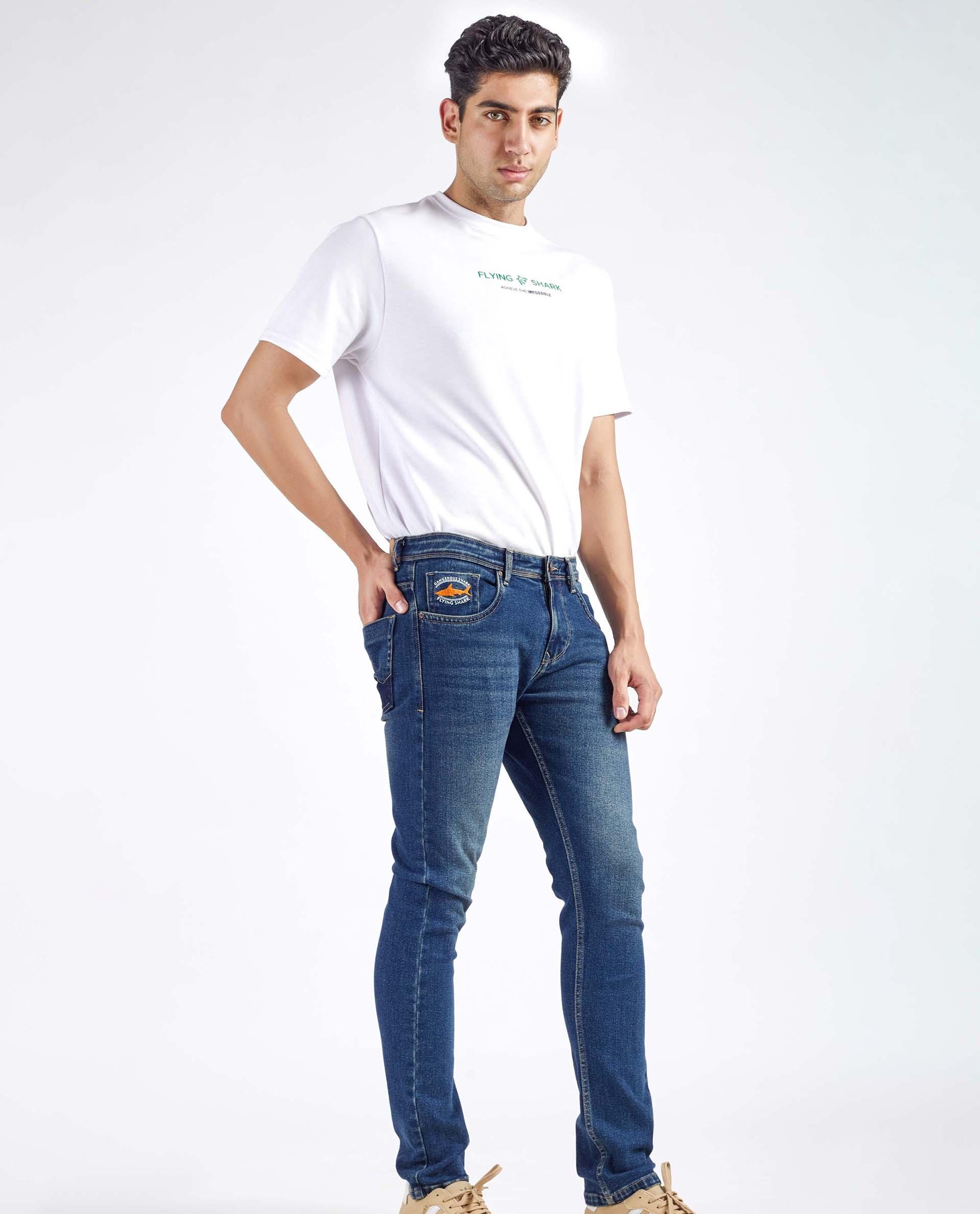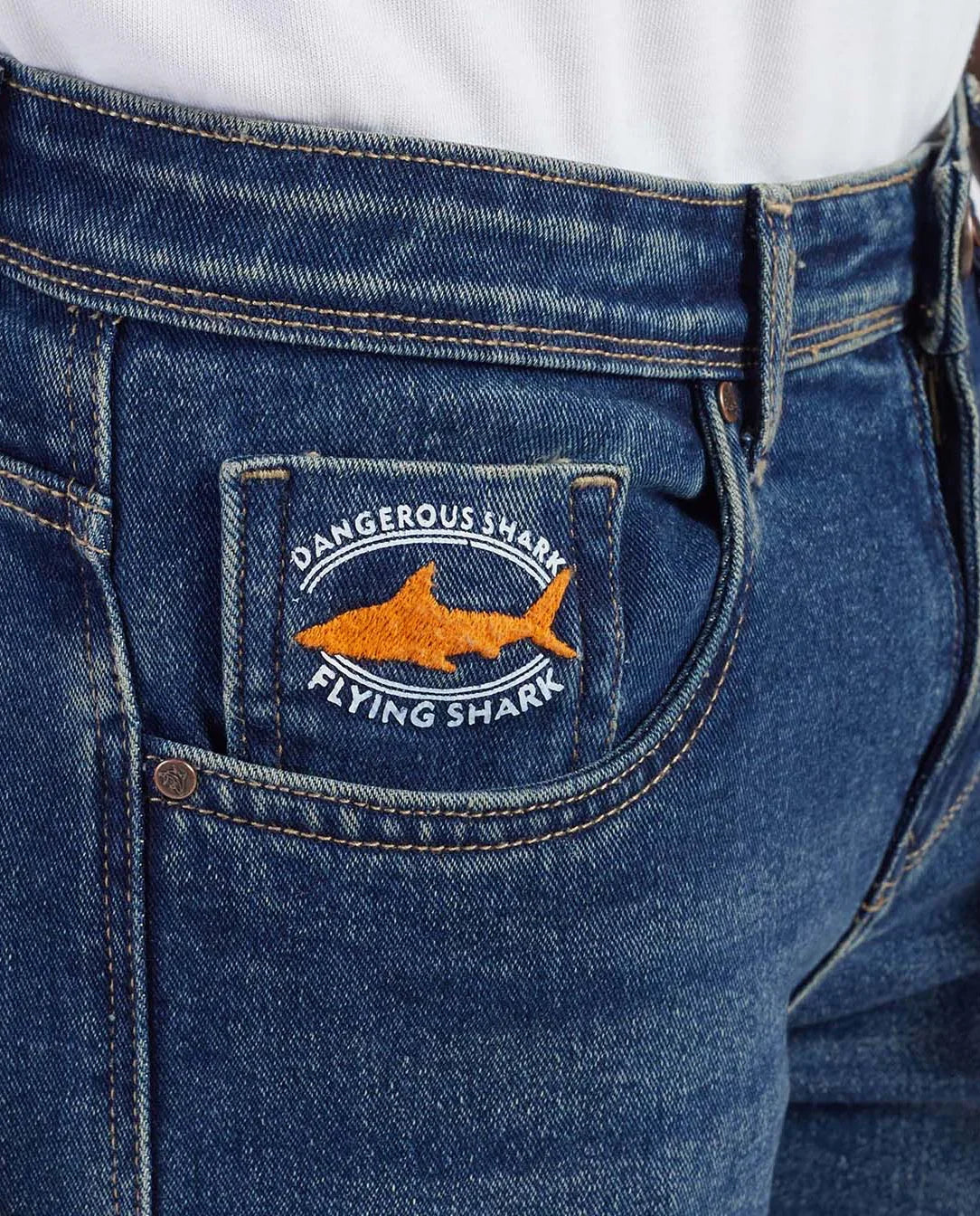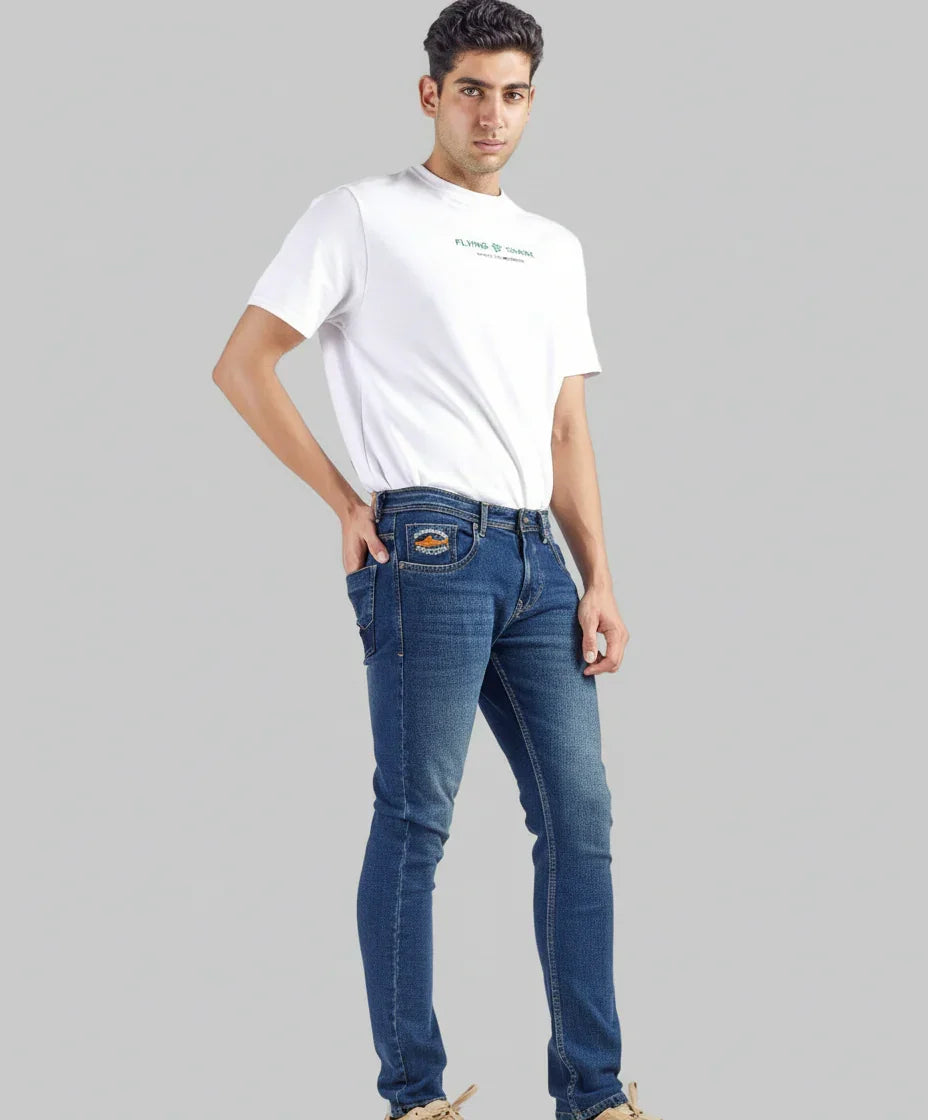 Crafted in a classic mid-wash blue, these jeans offer a timeless aesthetic with a modern edge. The subtle fading and whiskering enhance the natural texture of the denim, delivering a rugged yet refined look. Featuring a Regular-tapered fit, they contour effortlessly without compromising comfort. Signature orange detailing on the coin pocket adds a bold touch, perfectly balancing everyday versatility with standout style. Ideal for pairing with casual tees or smart layers, these jeans are designed for effortless confidence.