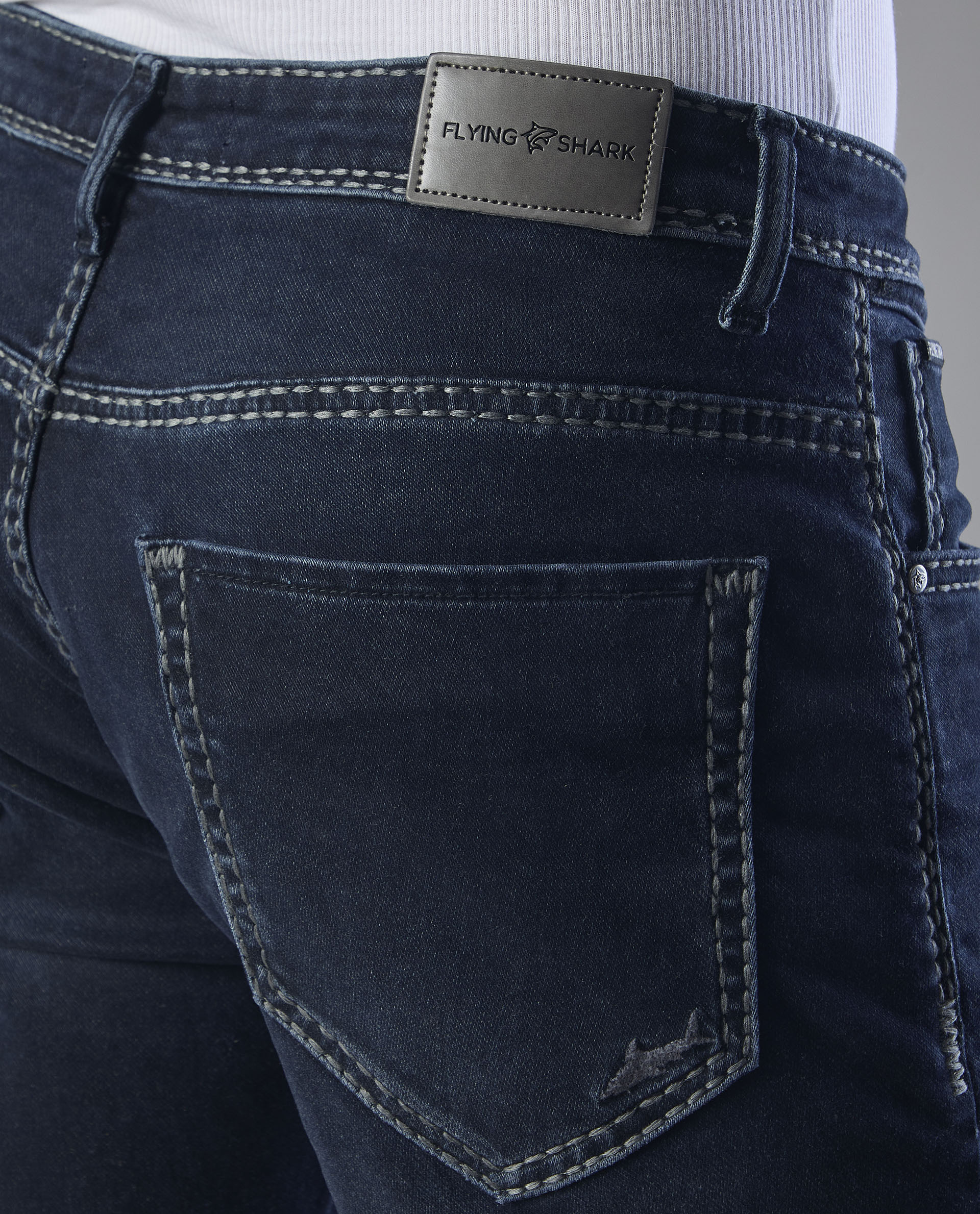 Upgrade your wardrobe with Flying Shark men’s Regular slim fit jeans, crafted from premium stretch denim for all-day comfort. Designed in a Carbon Black wash with subtle fading and contrast stitching, these jeans combine modern style with rugged durability. Featuring deep back pockets, branded coin pocket, leather logo patch, and metal button detailing, they are perfect for both casual wear and smart-casual office looks.