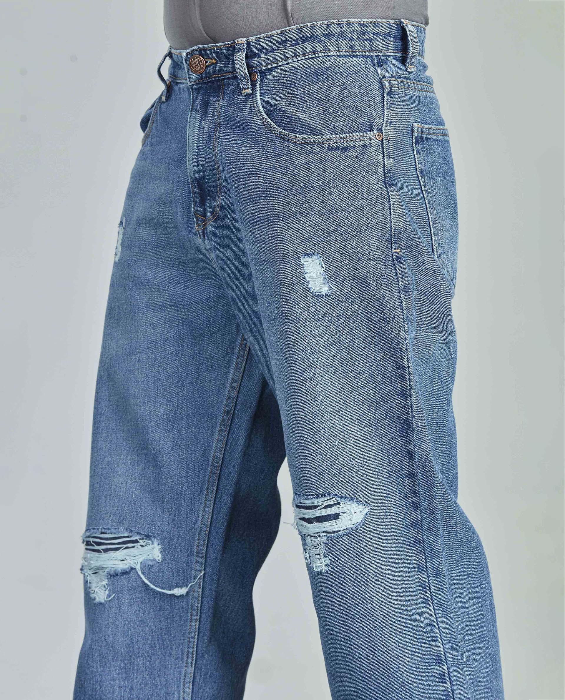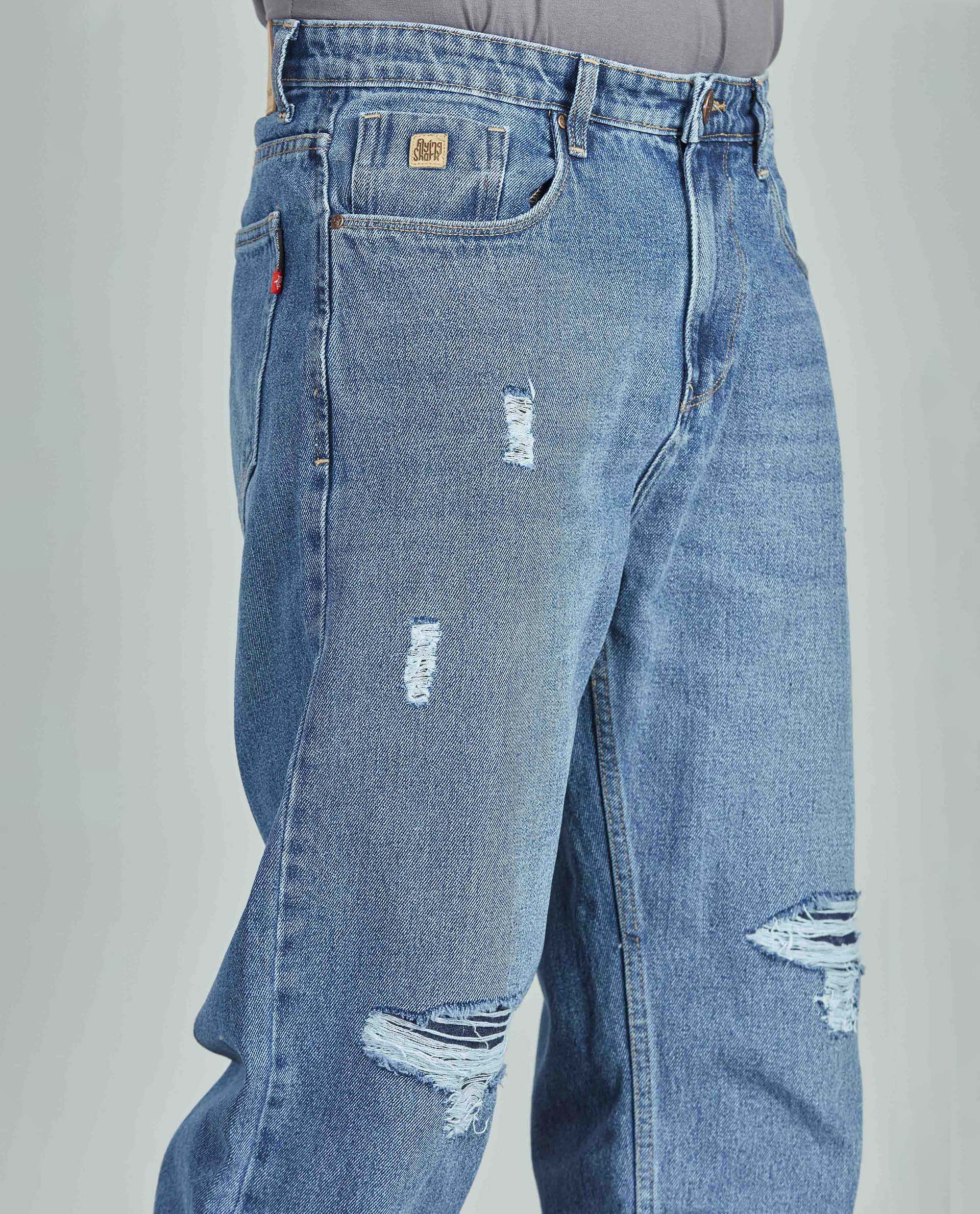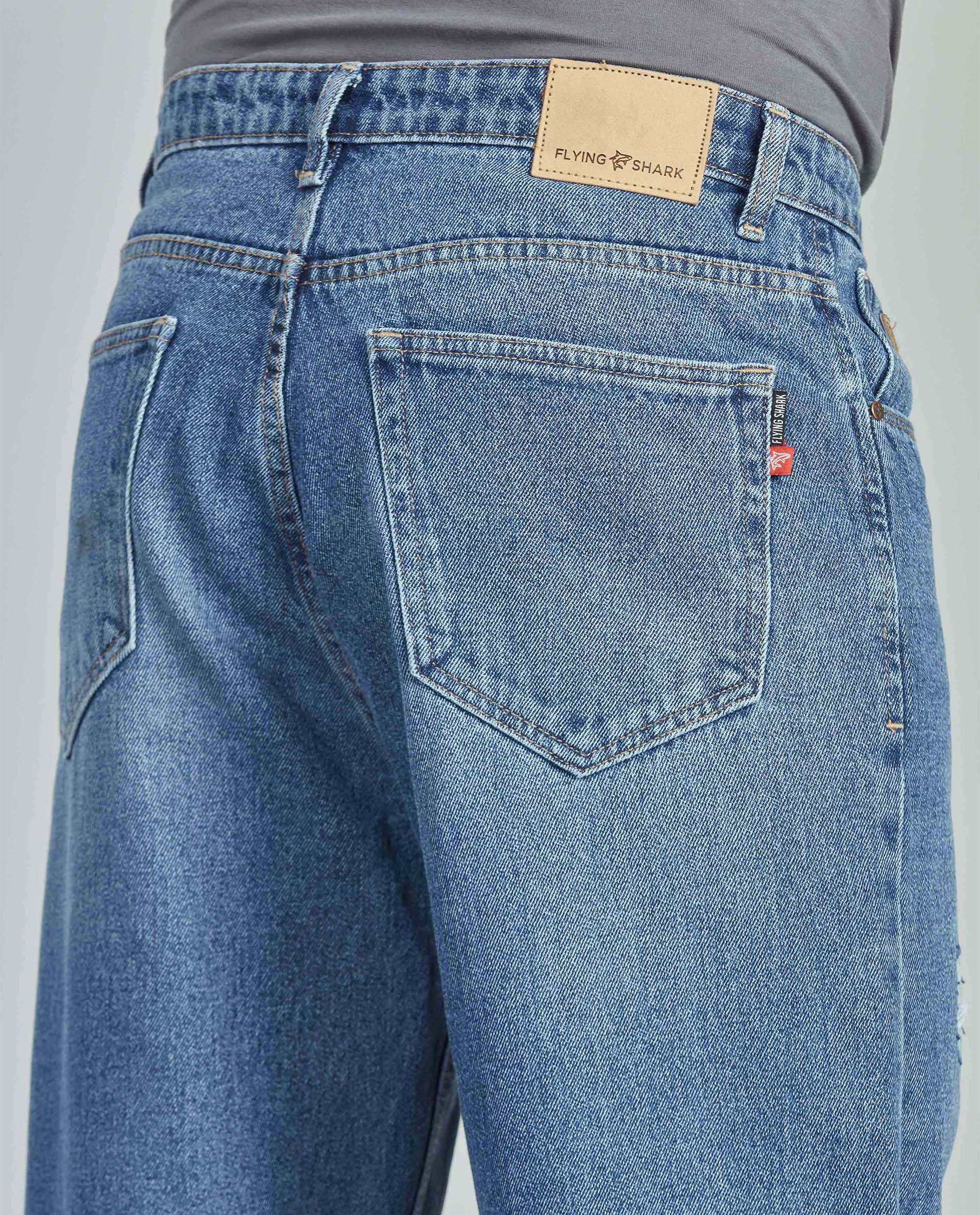 These Distressed relaxed fit jeans are known for their classic style, timeless appeal, and easy wearability. Made with sturdy denim that's been used for generations, these jeans will last you a lifetime. These jeans in a blue shade and Pair it with our graphic t-shirt for a casual outing.
