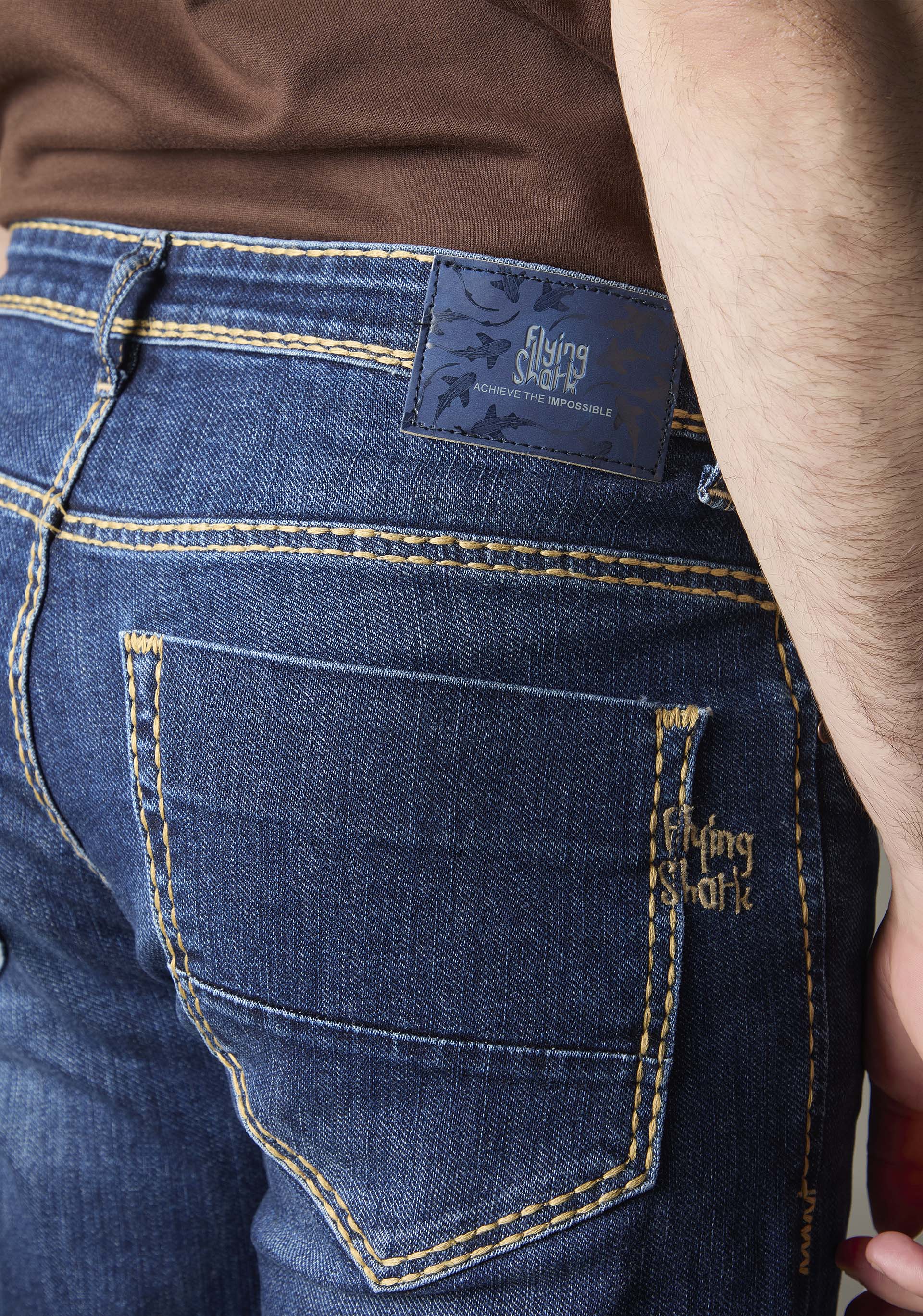 These Jeans Combine Classic Mid-Blue Denim With Standout Brand Details Like the Shark Embroidery, Bold Contrast Stitching, and Logo Patchwork. Perfect for Men Who Prefer Denim That’s Stylish, Durable, and Carries a Strong Brand Identity.