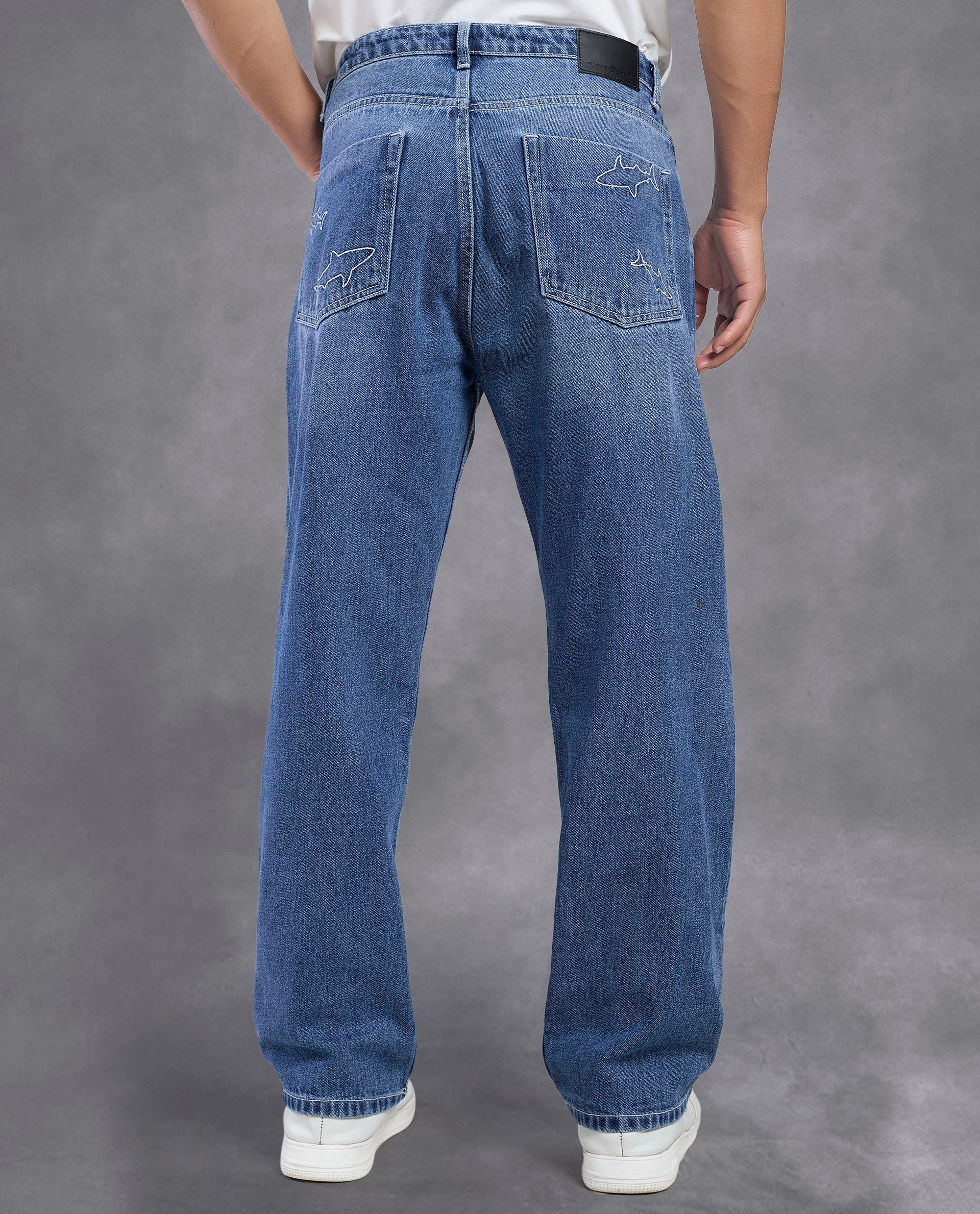 Make a bold fashion statement with these Shark Embroidery Denim Jeans, specially designed for men who love to stand out. Crafted from high-quality denim, these jeans feature unique shark-shaped embroidered patterns across the front, showcasing a playful yet stylish vibe that sets them apart from ordinary jeans.